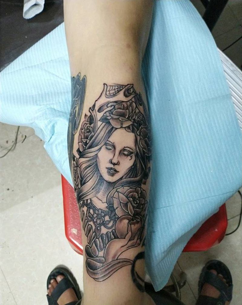 • T网红王老大花腿龙纹身图片_腿部新传统纹身图案