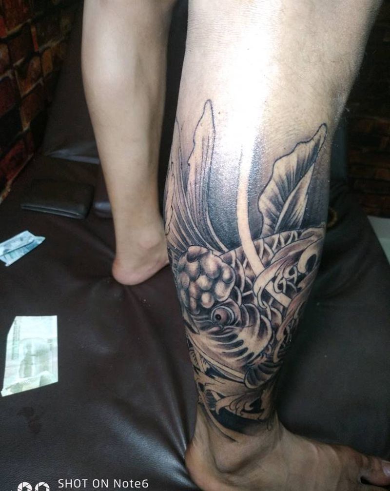 • T网红王老大花腿龙纹身图片_腿部新传统纹身图案