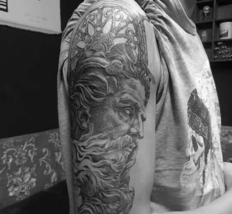 当前位置: 首页 >广东省梅州市纹身店-敦煌刺青纹身图案>波塞冬纹身图片_手臂欧美写实纹身图案