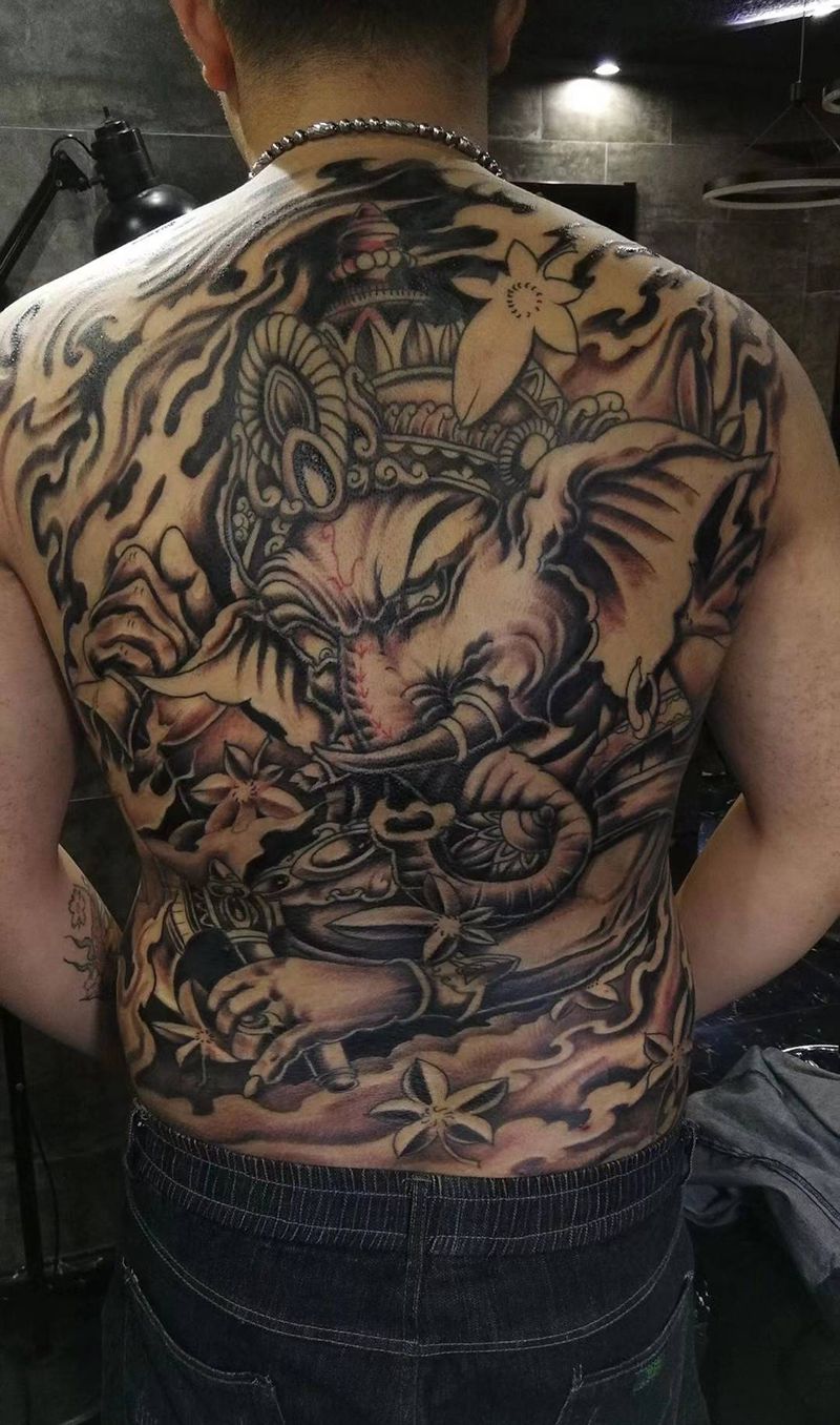 当前位置: 首页 >广东省汕尾市纹身店-C道纹身工作室纹身图案>象神纹身图片_背部纹身图案