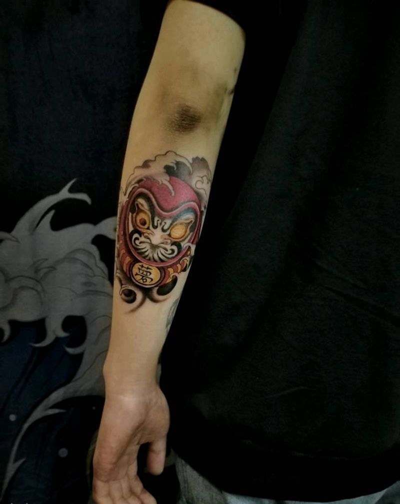 当前位置: 首页 >广东省汕尾市纹身店-東道主刺青纹身图案>达摩蛋纹身图片_手臂新传统纹身图案