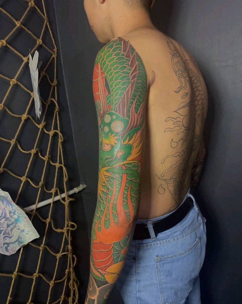 当前位置: 首页 >广东省河源市纹身店-一门刺青纹身图案>花臂龙.纹身图片_手部老传统龙纹身图案