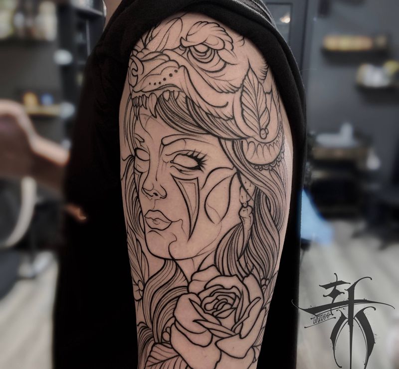 • 纹身吧推荐的披肩图腾半胛纹身图案作品展示