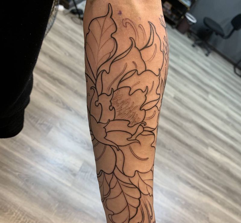 • T网红王老大花腿龙纹身图片_腿部新传统纹身图案