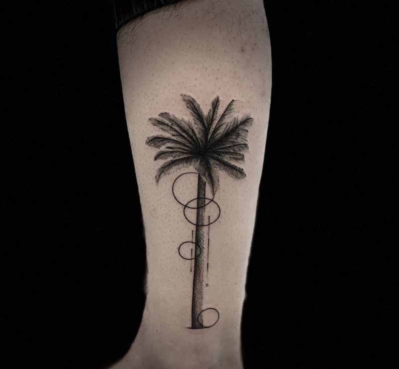 椰树纹身图片_腿部纹身图案