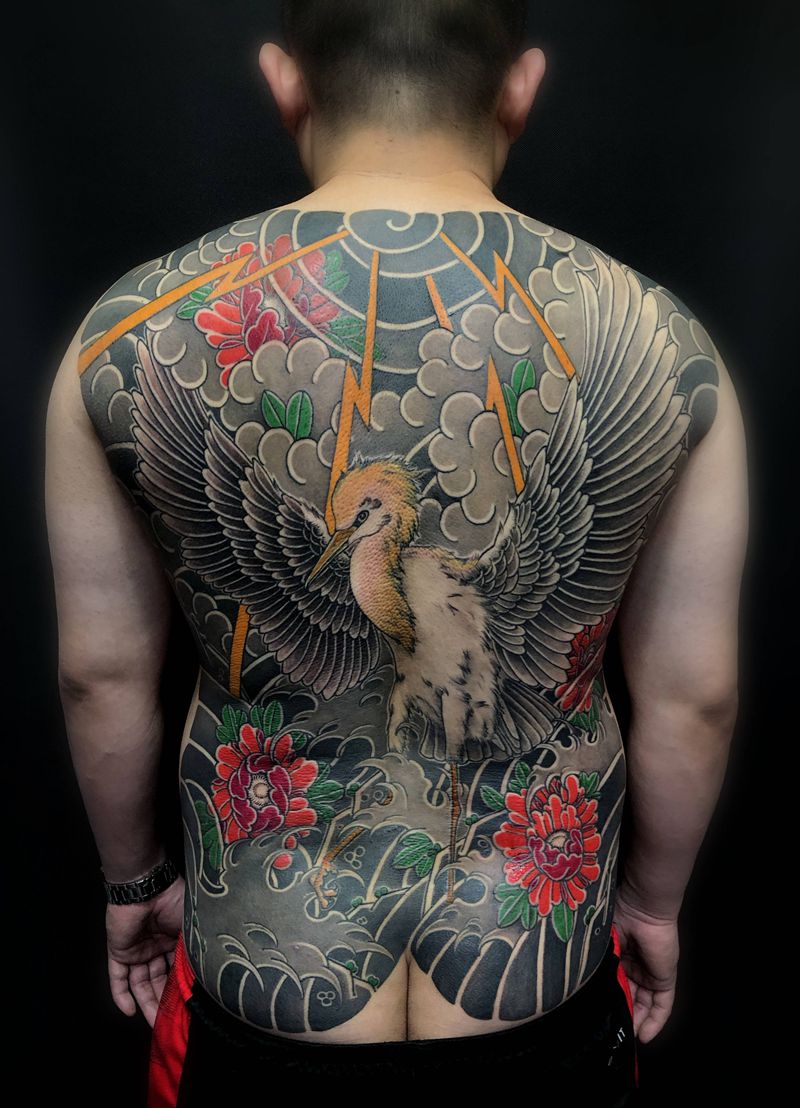 黑灰满背纹身图案