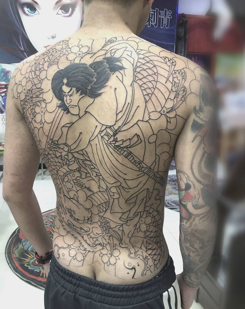 • 黑灰满背纹身图案