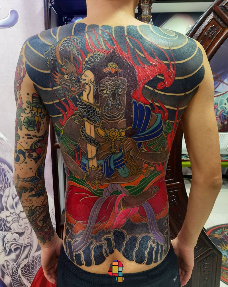 原创老传统不动明王纹身图片_背部老传统纹身图案