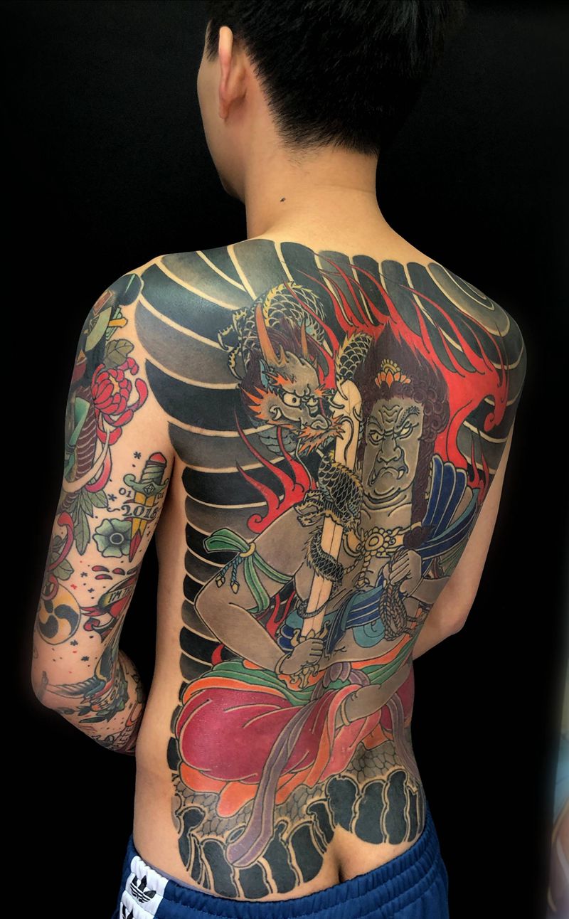 黑灰满背纹身图案