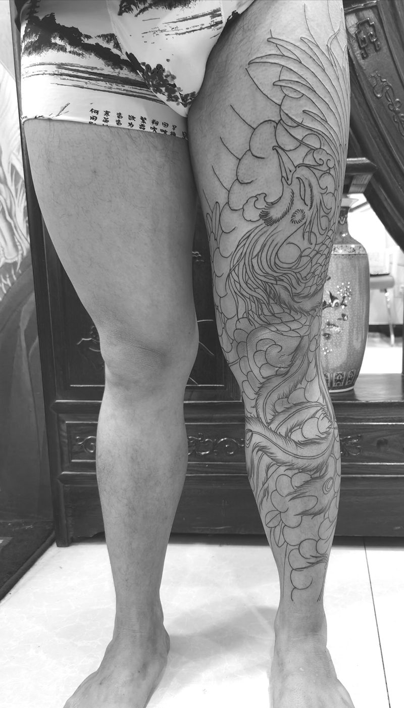 黑灰满背纹身图案