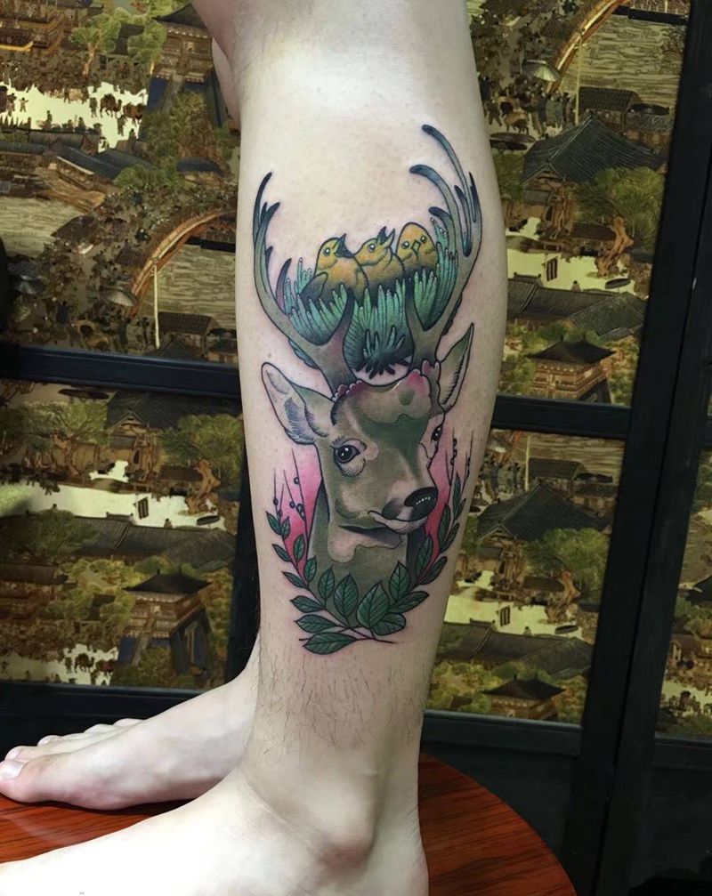 当前位置: 首页 >广东省东莞市纹身店-龙虎门刺青连锁机构纹身图案>欧美鹿头纹身图片_腿部纹身图案