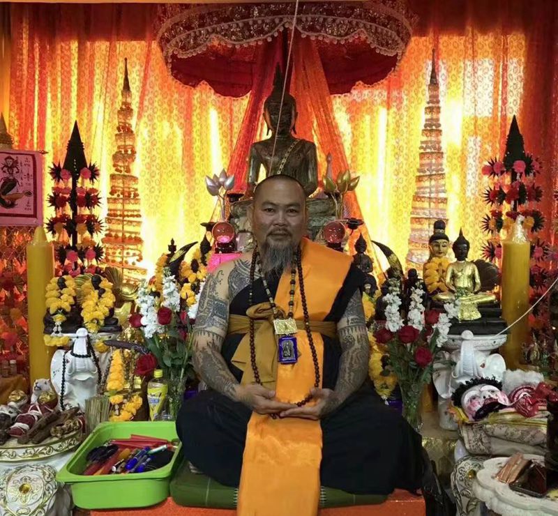 当前位置: 首页 >广东省东莞市纹身店-龙虎门刺青连锁机构纹身图案>给泰国白衣法师阿赞素本师傅刺图纹身图片_腿部纹身图案