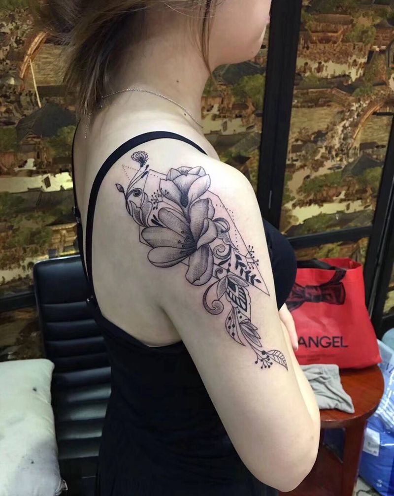 • 女性大花胸纹身_43张霸气漂亮的女性大花胸纹身图案作品