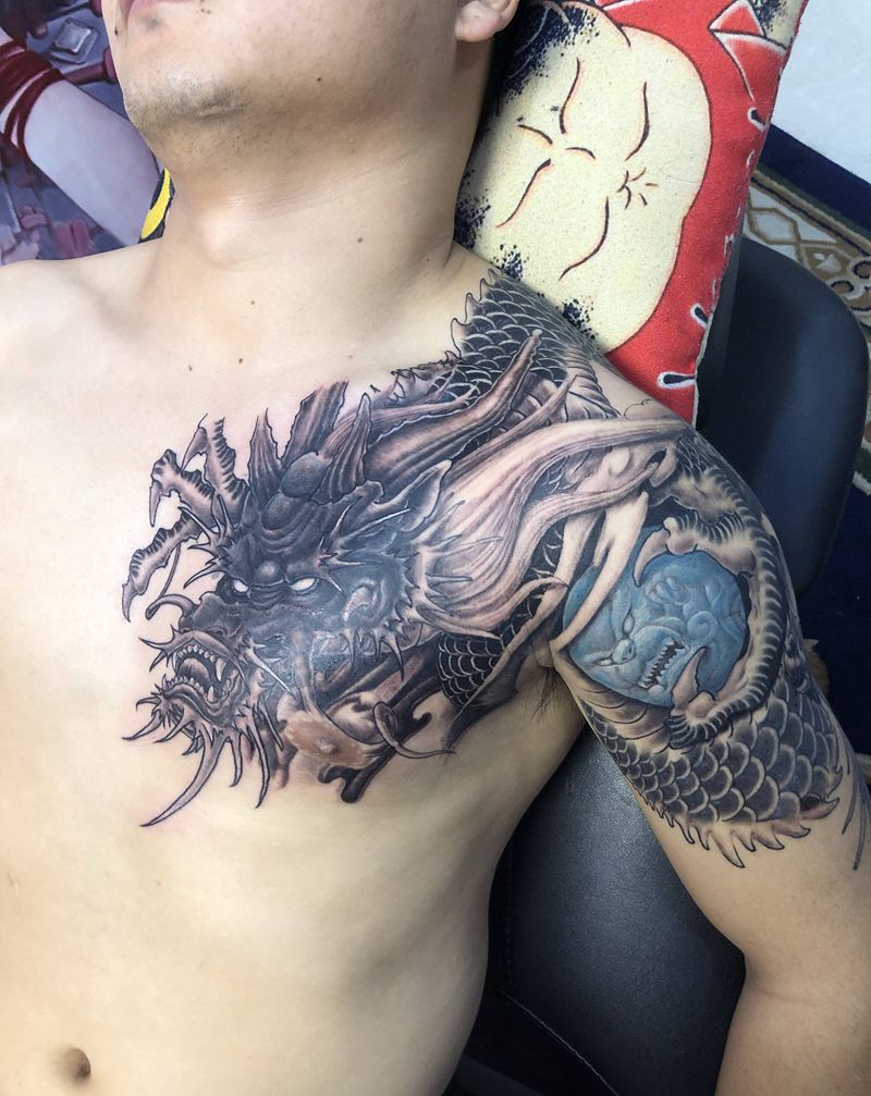 当前位置: 首页 >广东省东莞市纹身店-龙虎门刺青连锁机构纹身图案>遮盖旧图作品纹身图片_肩部胸部纹身图案