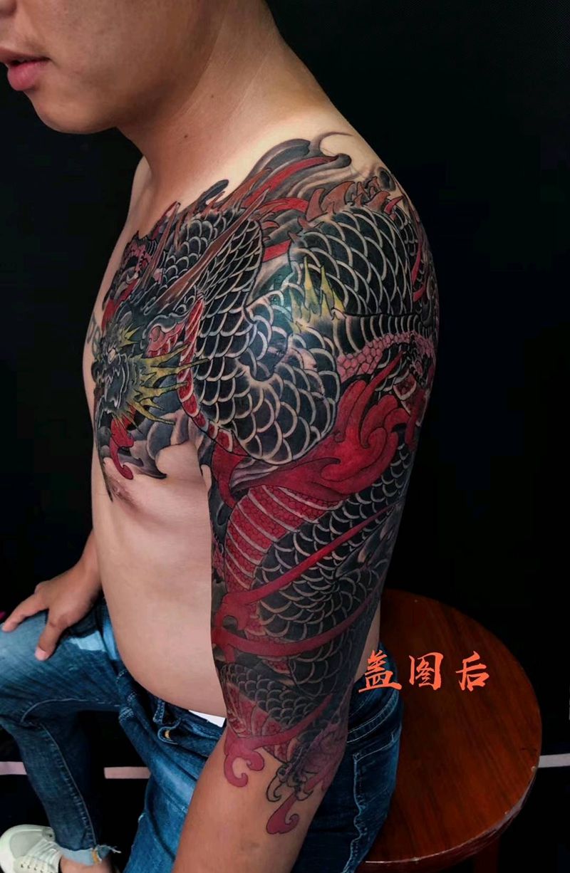 • T网红王老大花腿龙纹身图片_腿部新传统纹身图案
