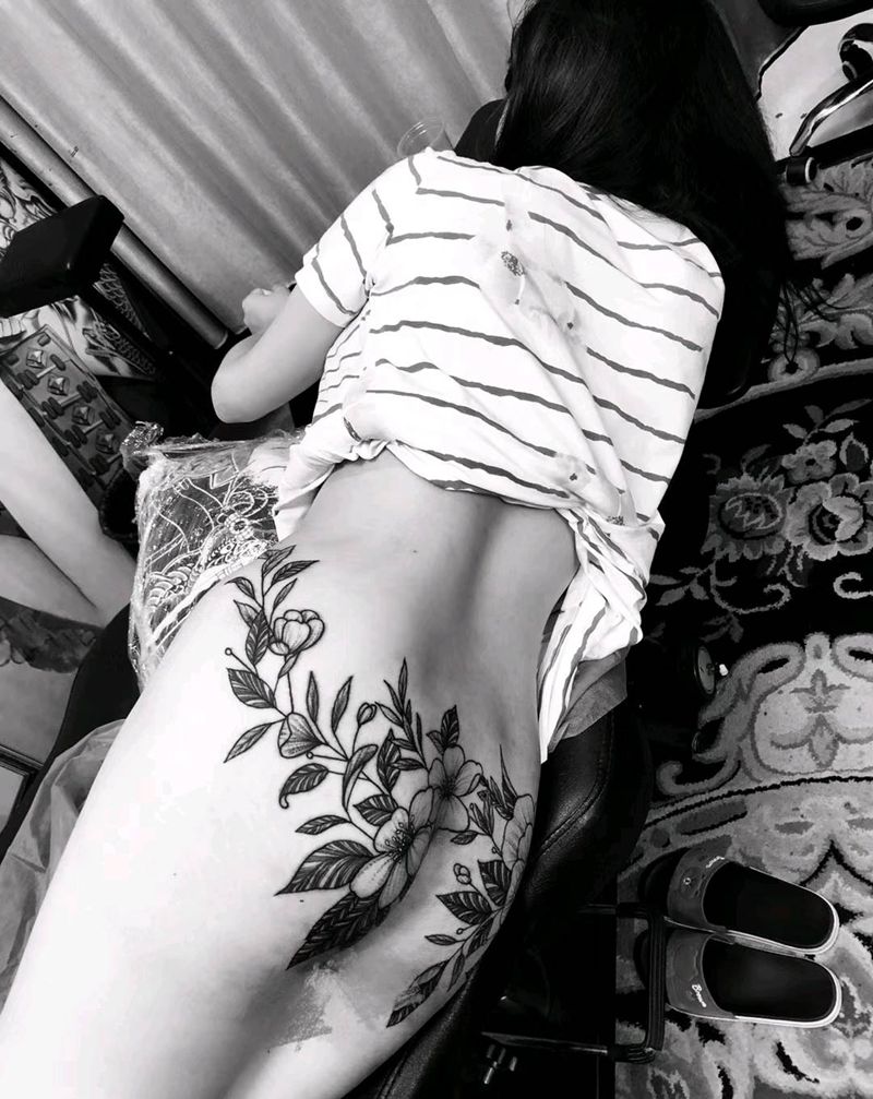 遮盖屁股上疤痕纹身图片_臀部点刺纹身图案