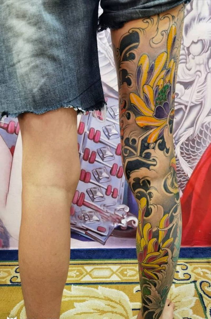 一组15张莲花纹身手