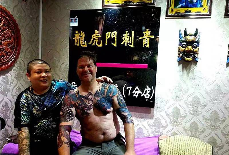 当前位置: 首页 >广东省东莞市纹身店-龙虎门刺青连锁机构纹身图案>中东外国友人九条龙完成了第三条纹身图片_胸部手臂纹身图案
