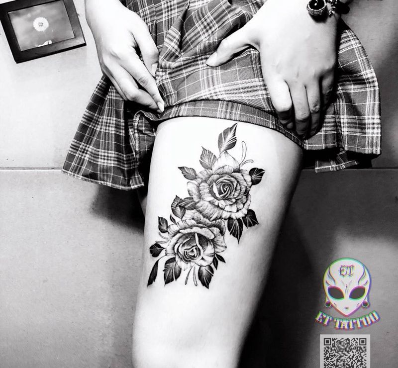 当前位置: 首页 >广东省东莞市纹身店-ET TATTOO纹身图案>大腿花遮盖旧蝎子纹身图片