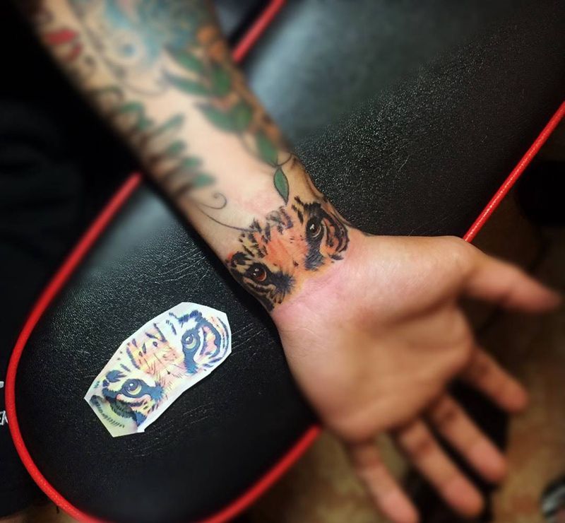 • 手背潮流时尚的玫瑰花眼睛纹身图案