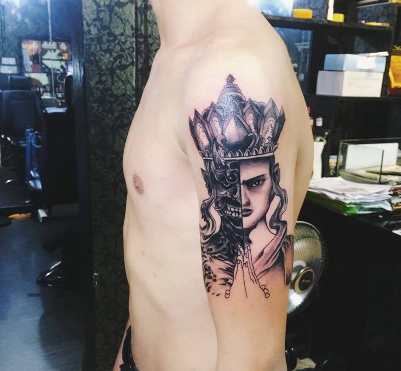 当前位置: 首页 >广东省东莞市纹身店-ET TATTOO纹身图案>半面佛魔纹身图片