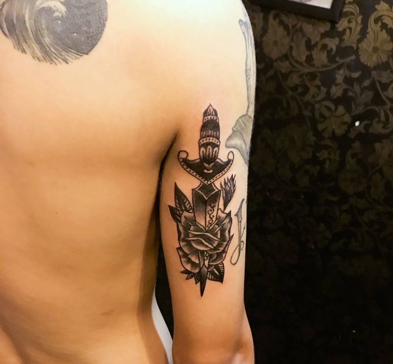 当前位置: 首页 >广东省东莞市纹身店-ET TATTOO纹身图案>old school 匕首纹身图片