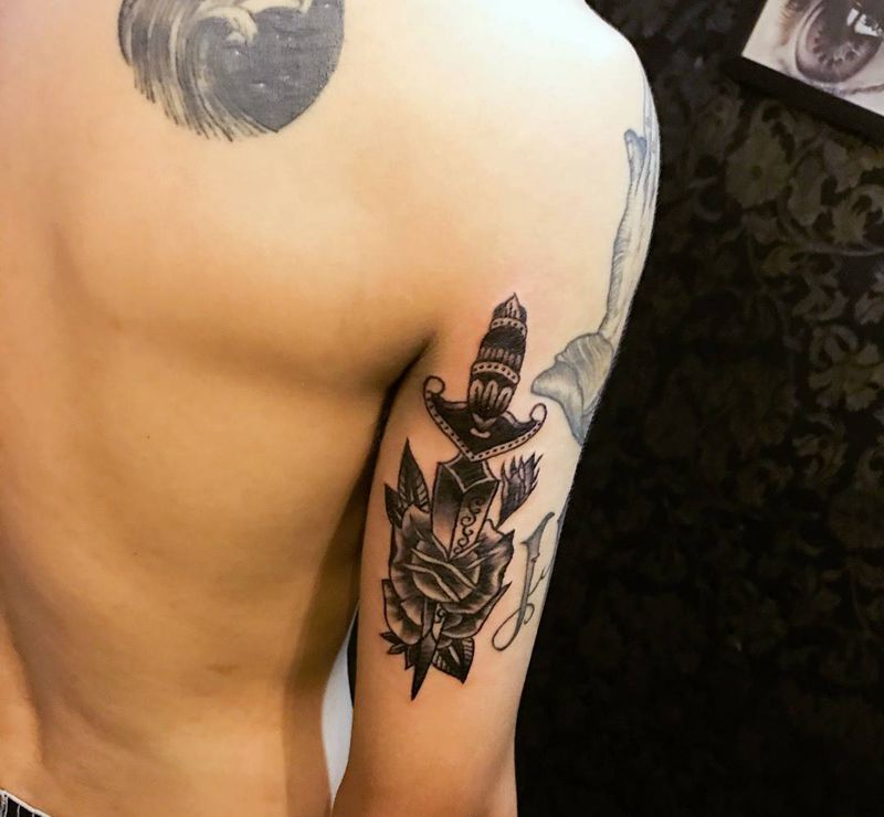 当前位置: 首页 >广东省东莞市纹身店-ET TATTOO纹身图案>old school 匕首纹身图片