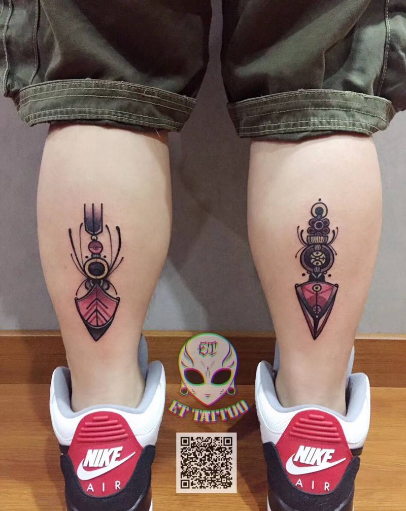 • T网红王老大花腿龙纹身图片_腿部新传统纹身图案