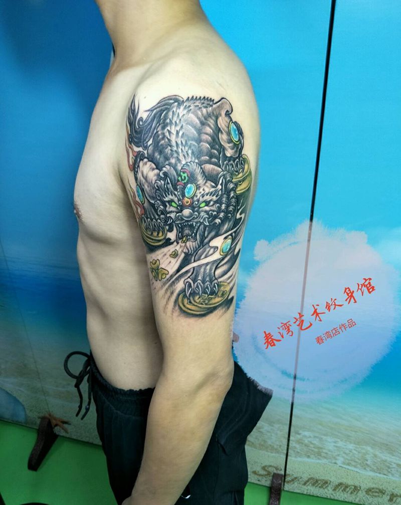 当前位置: 首页 >广东省阳江市纹身店-阳春市春湾艺术纹身馆纹身图案>遮盖作品,貔貅神兽纹身图片