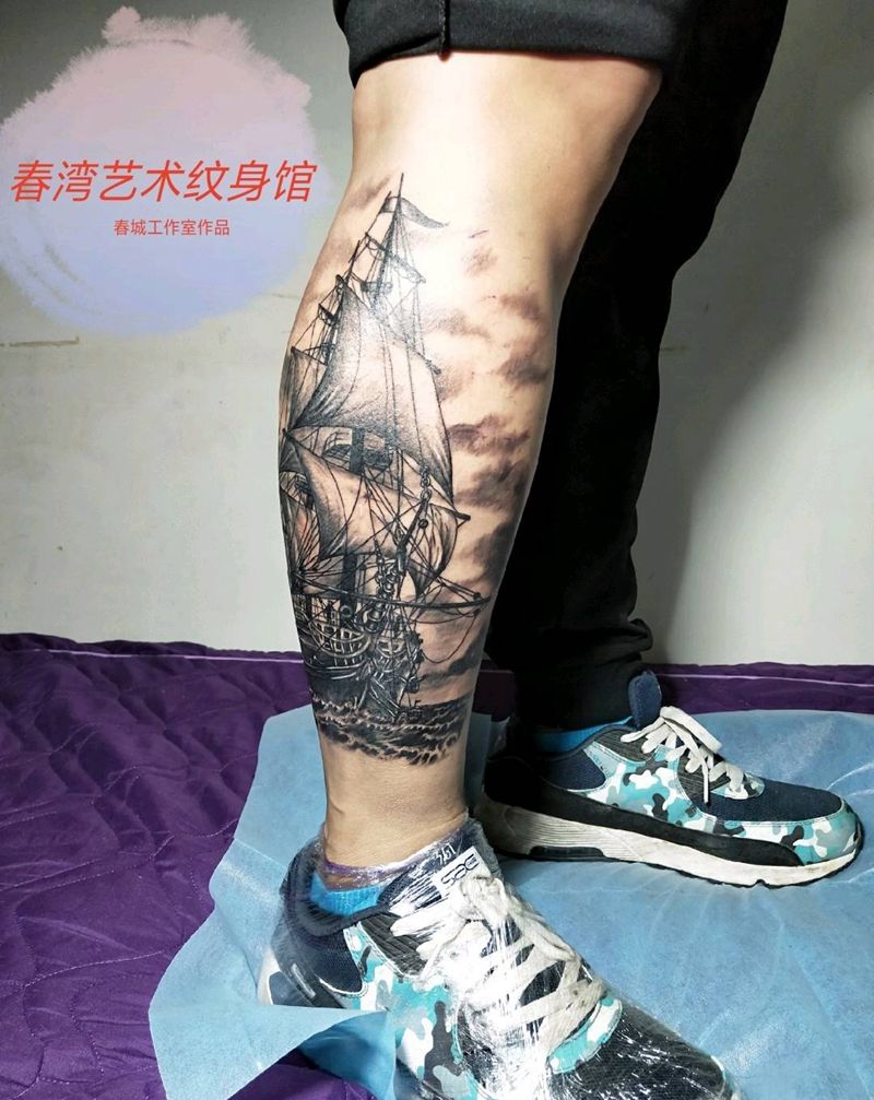 • T网红王老大花腿龙纹身图片_腿部新传统纹身图案
