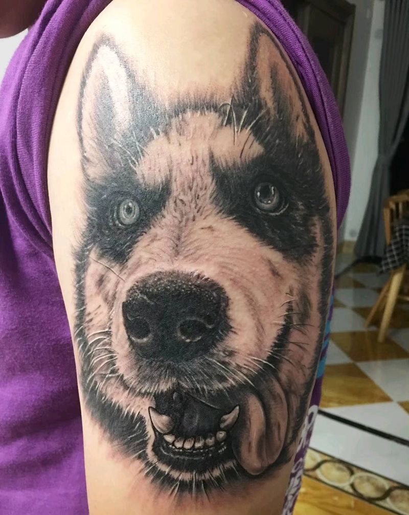 当前位置: 首页 >广东省阳江市纹身店-阳春市春湾艺术纹身馆纹身图案>哈士奇纹身图片