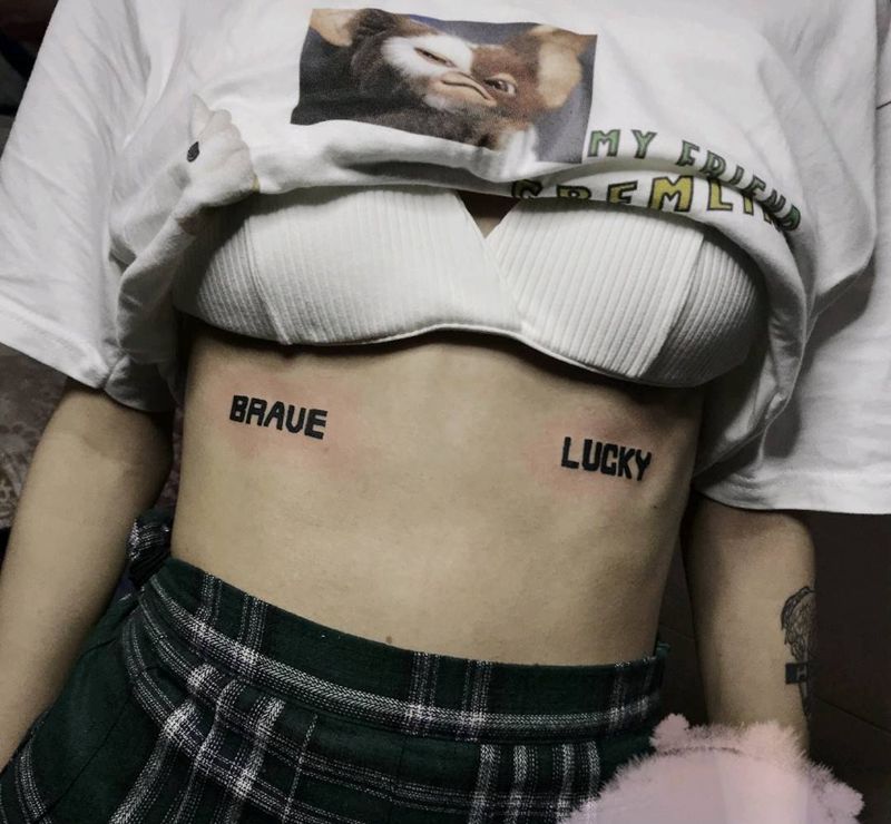 • T关于私处得爱!纹身图片_成品腹部清新字符图腾纹身图案