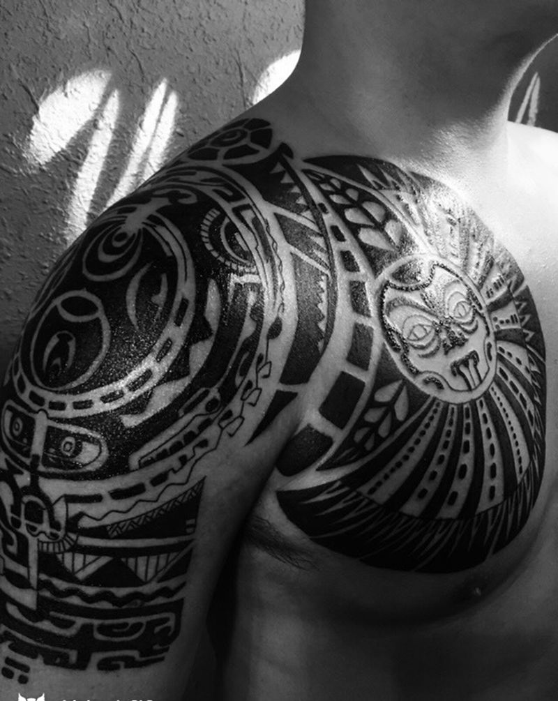 • 纹身吧推荐的披肩图腾半胛纹身图案作品展示