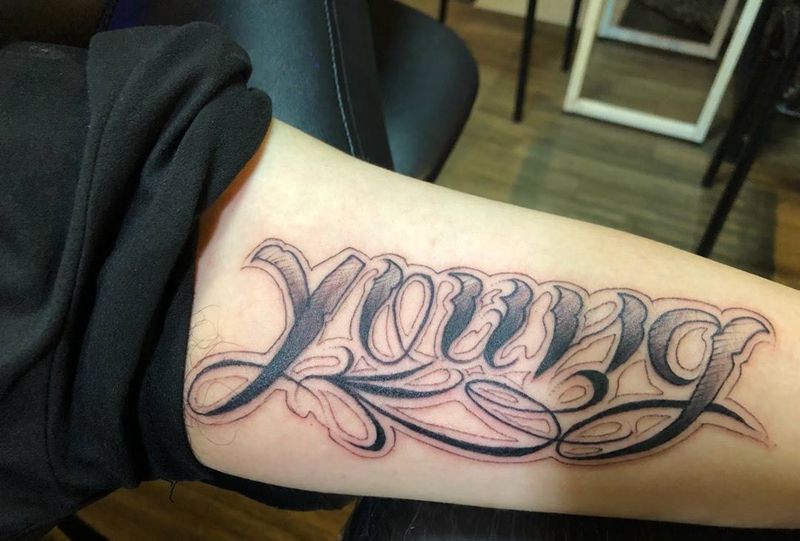 当前位置: 首页 >广东省东莞市纹身店-张扬刺青纹身图案>奇卡诺花体纹身图片_手臂花体字纹身图案