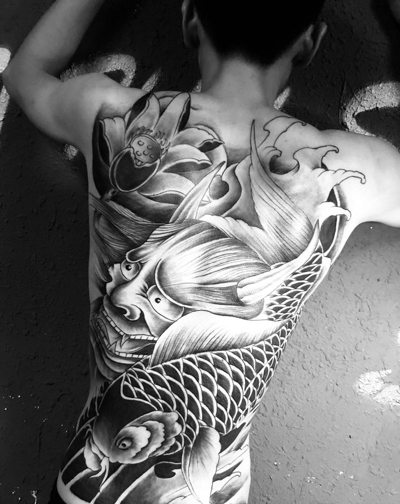 当前位置: 首页 >广东省东莞市纹身店-张扬刺青纹身图案>满背鲤鱼般诺纹身图片