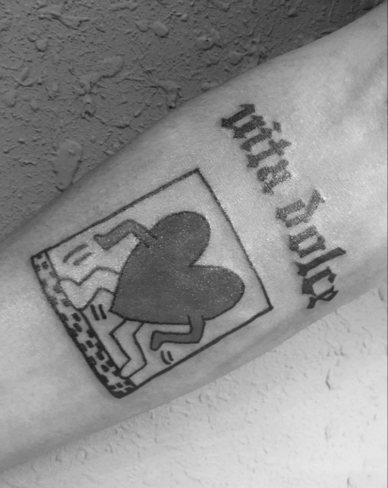 当前位置: 首页 >广东省东莞市纹身店-张扬刺青纹身图案>权志龙同款奔跑的心纹身图片_成品手臂清新纹身图案