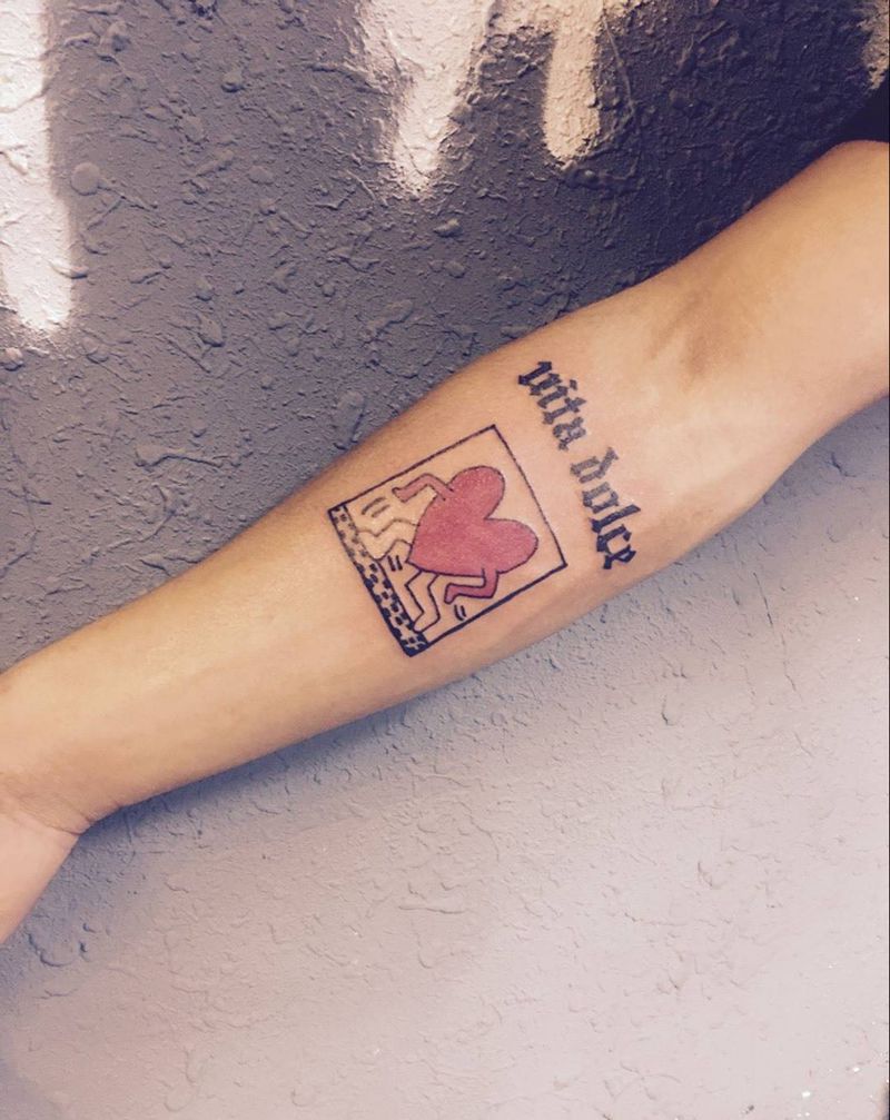 当前位置: 首页 >广东省东莞市纹身店-张扬刺青纹身图案>权志龙同款奔跑的心纹身图片_成品手臂清新纹身图案