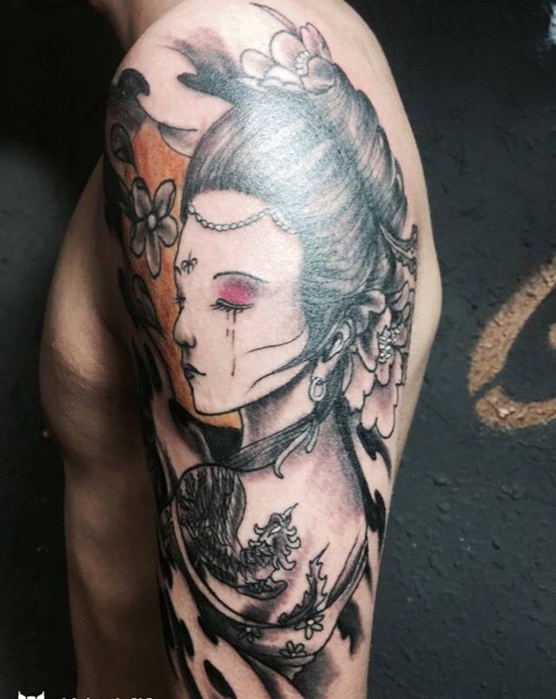 当前位置: 首页 >广东省东莞市纹身店-张扬刺青纹身图案>艺妓纹身图片
