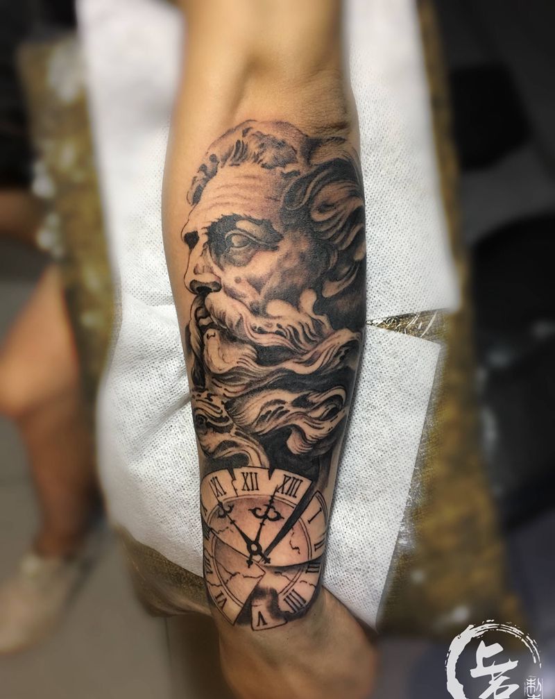 波赛冬海神纹身图片_手臂欧美写实纹身图案
