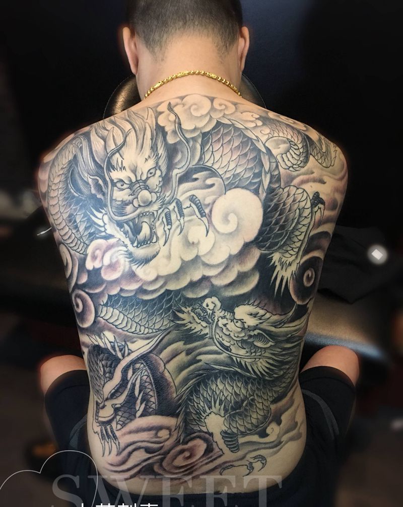 • T云龙九郎纹身图片_背部老传统云龙九郎纹身图案