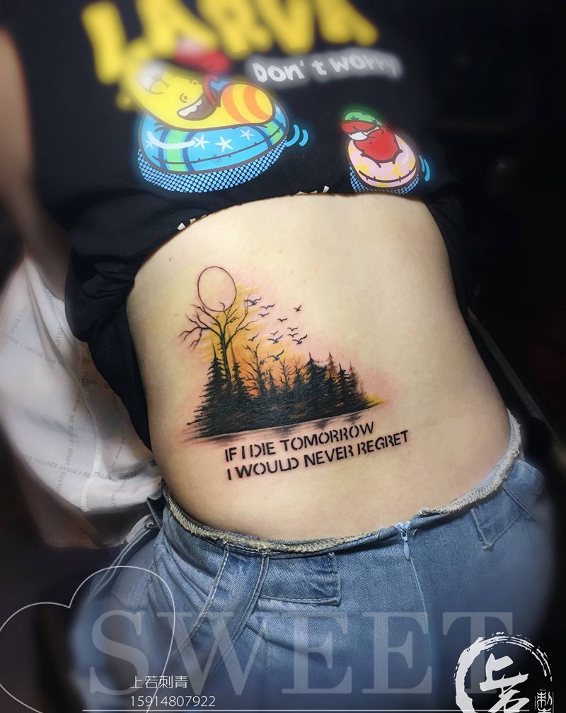 • T关于私处得爱!纹身图片_成品腹部清新字符图腾纹身图案