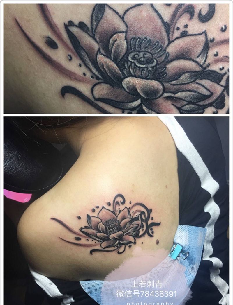 一组15张莲花纹身手