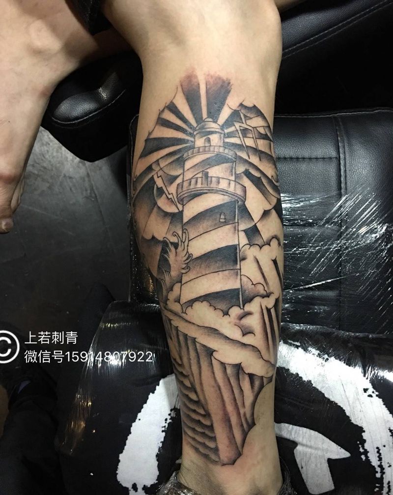 • T包小腿吹火男+阿多福纹身图片_腿部老传统新传统吹火男阿