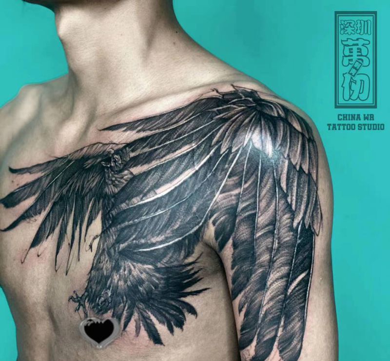 当前位置: 首页 >广东省东莞市纹身店-万仞刺青(东莞总店)纹身图案>鹰纹身图片_胸部肩部鹰