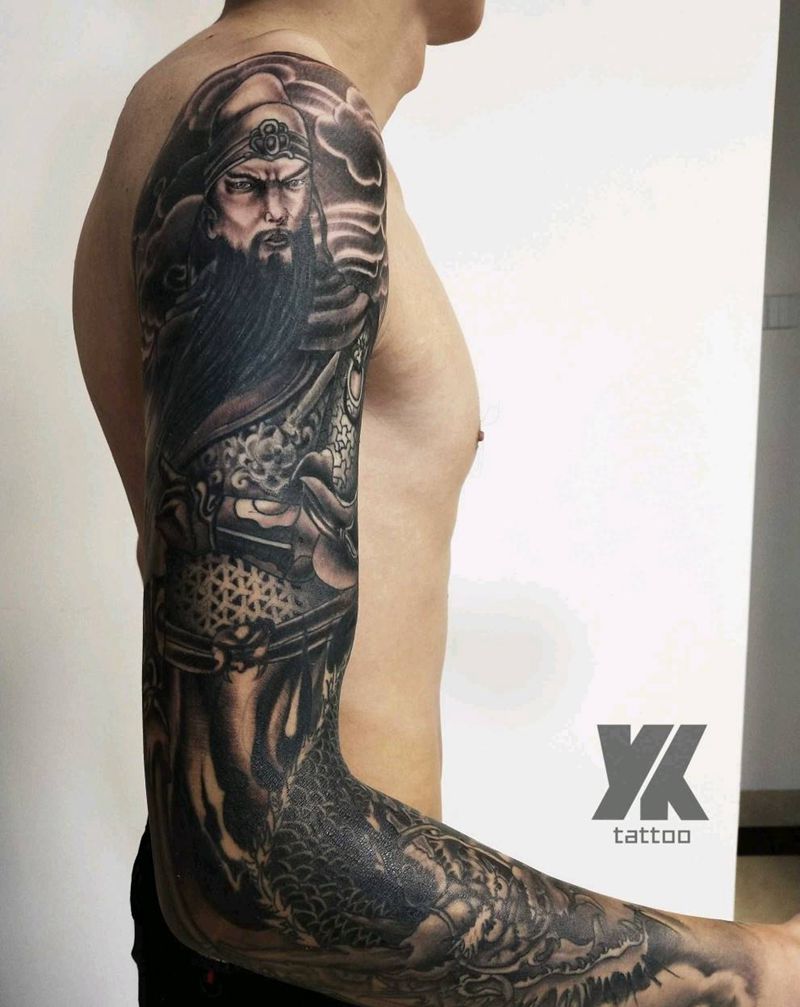 当前位置: 首页 >广东省东莞市纹身店-万仞刺青(东莞总店)纹身图案>花臂关羽纹身图片