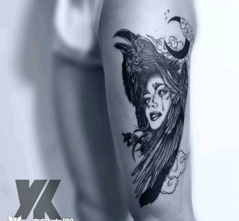 当前位置: 首页 >广东省东莞市纹身店-万仞刺青(东莞总店)纹身图案>原创乌鸦女纹身图片