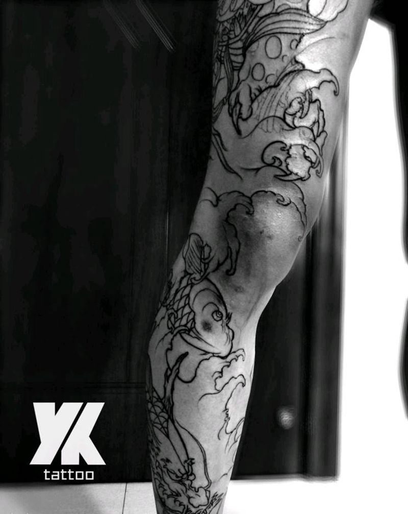 • T网红王老大花腿龙纹身图片_腿部新传统纹身图案