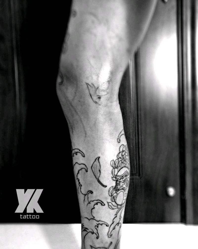 当前位置: 首页 >广东省东莞市纹身店-万仞刺青(东莞总店)纹身图案>花腿线条纹身图片