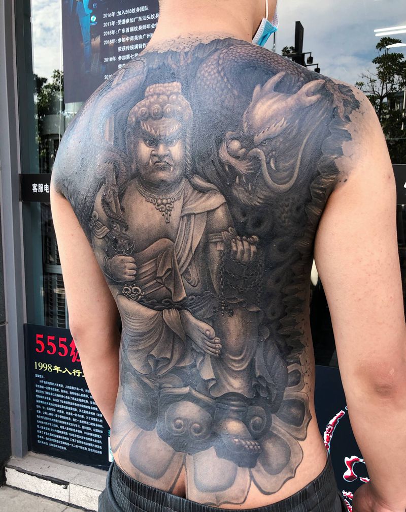 当前位置: 首页 >广东省东莞市纹身店-555纹身馆纹身图案>不动明王(冥王)纹身图片_背部臀部新传统欧美写实黑灰写实石雕石裂纹身图案