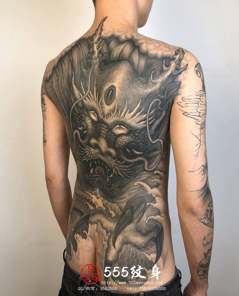 • T云龙九郎纹身图片_背部老传统云龙九郎纹身图案